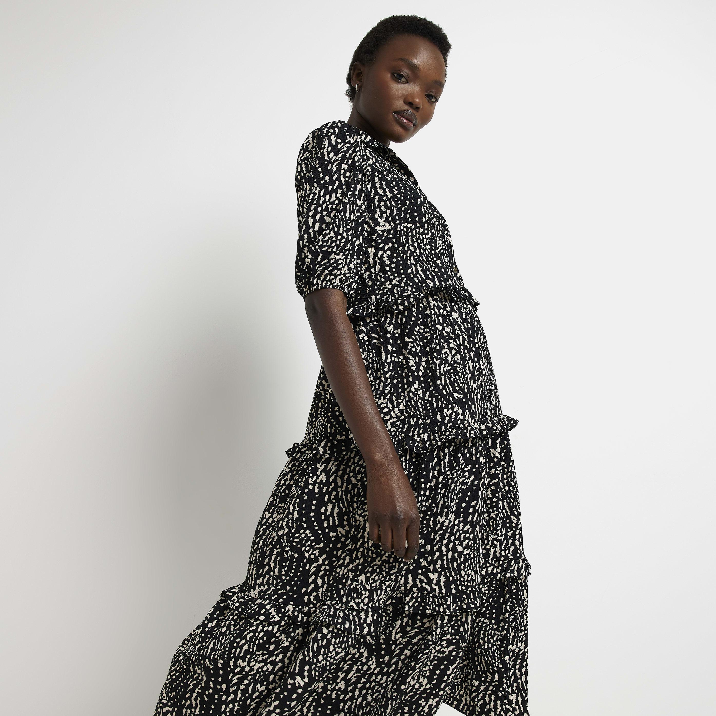River Island Black Spot Frill Midi Dress Lyst Uk